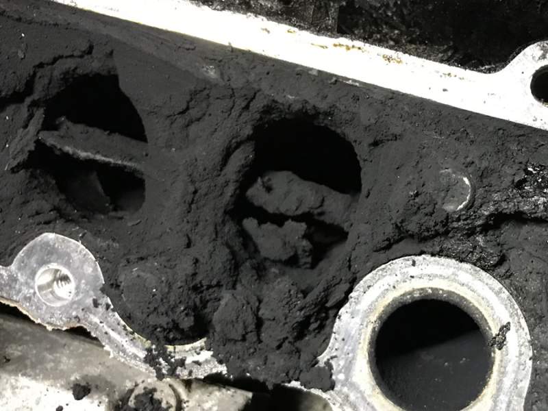Im folgenden sieht man einen Ansaugtrakt der über die Jahre durch eine nicht optimierten Abgasrückführung (AGR) total verkokt wurde.